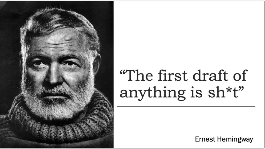 That’s a great first draft! There’s a story there, somewhere. Theres a beginning, a middle, and an end. We’ve got something. It exists.