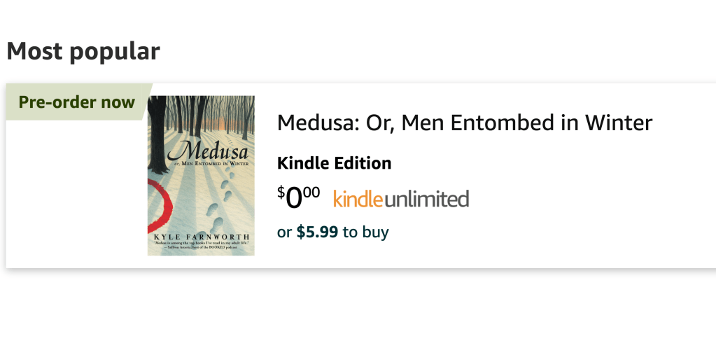 Medusa is officially out in the world, at least in one important way. The ebook preorder is now live on Amazon.